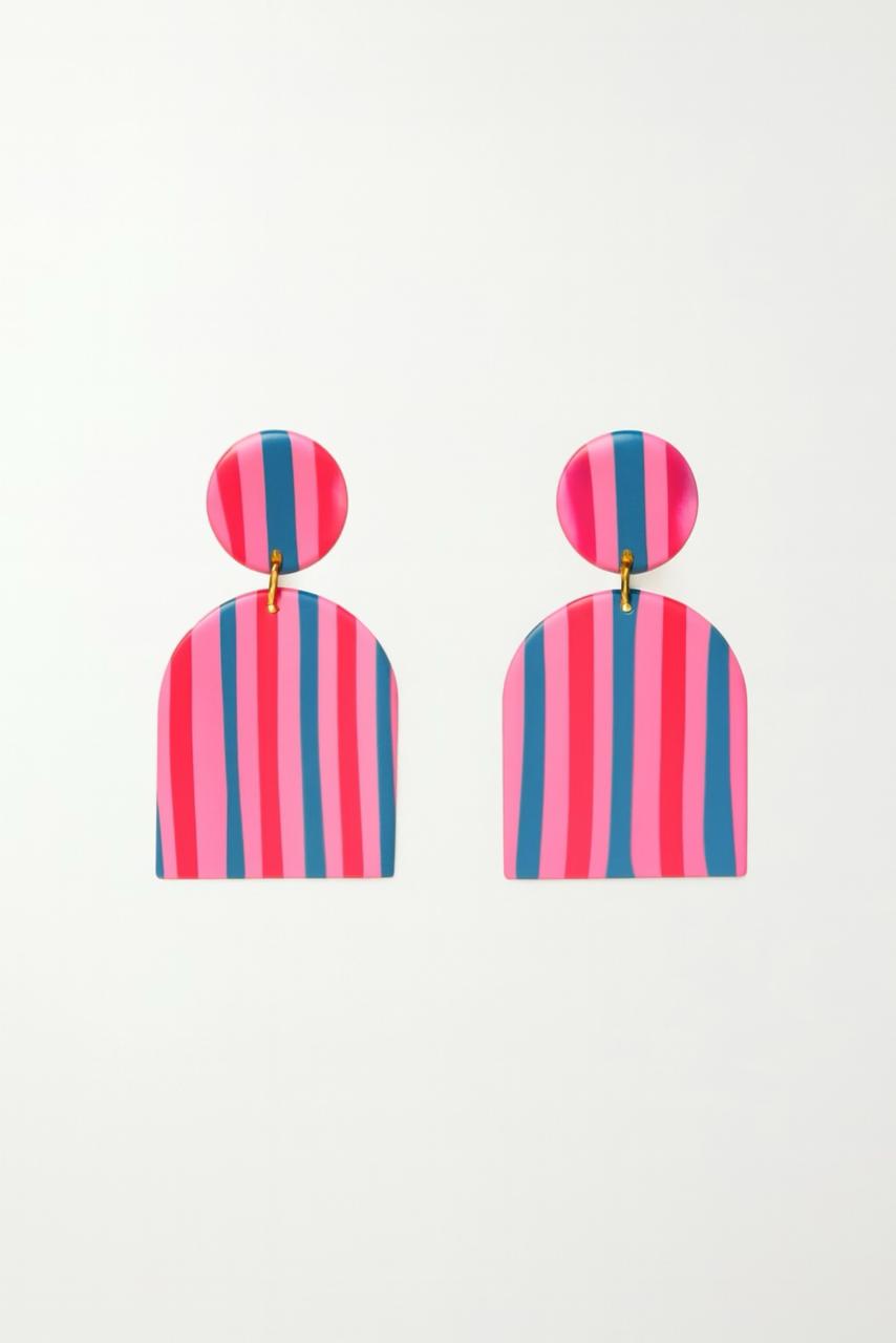 Aros colgantes de rayas Rosa fucsia y azul