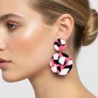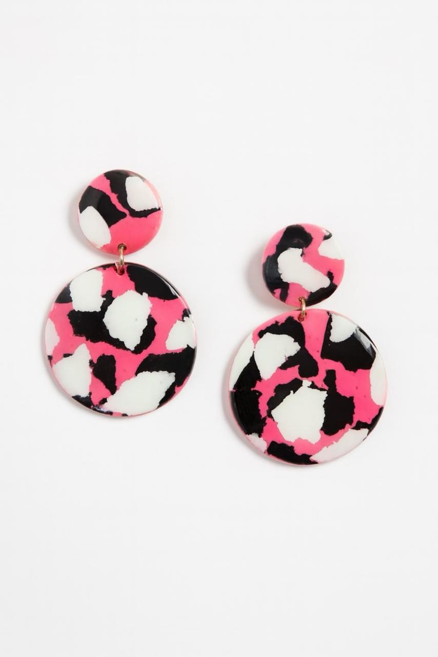 Aros colgantes Print Rosado negro y blanco