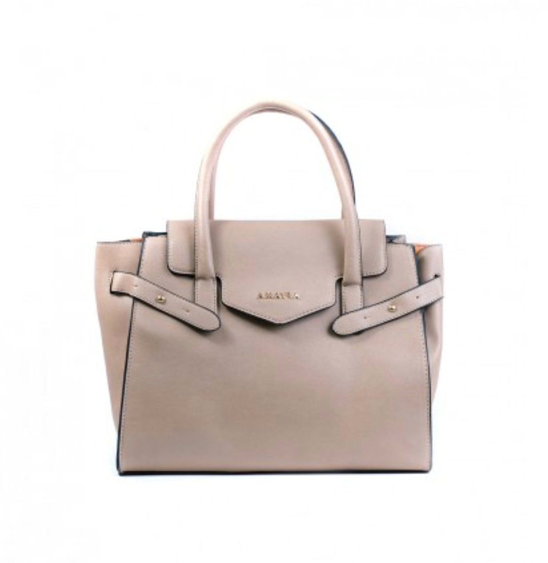 Cartera Amayra con un compartimento principal con cierre y broche. Incluye correas ajustables.